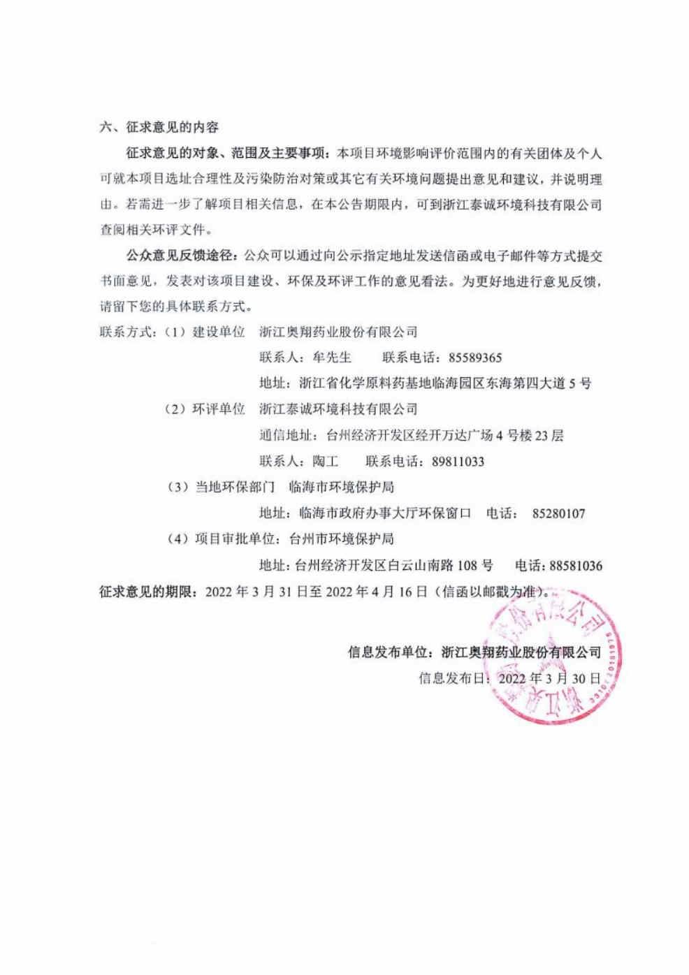特色原料药及关键中间体产业项目二期技改环评信息公告